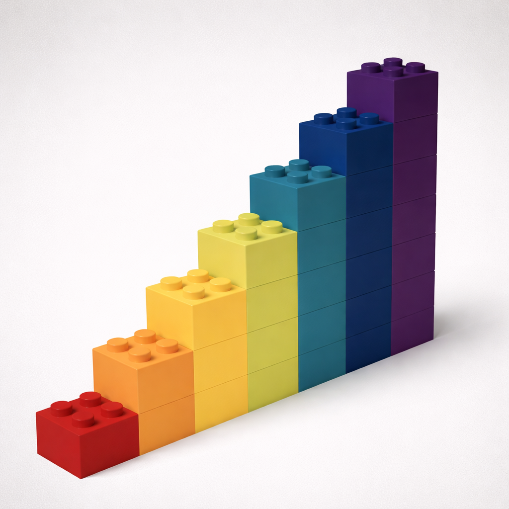 Like building with LEGO, every piece matters. Growth happens each time you add one more.